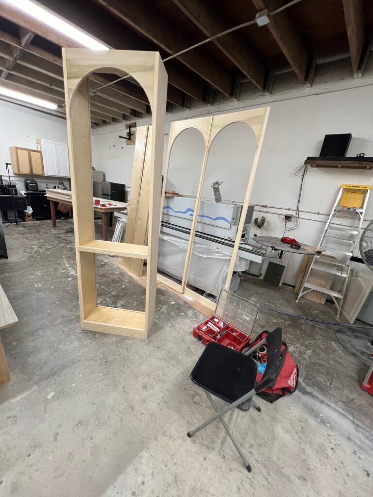 Challenge: The main challenge was to introduce a distinct and classic architectural element—the arches—into a modern home in a way that felt both elegant and perfectly natural. Fabricating three perfectly identical, graceful arches and integrating the entire floor-to-ceiling unit seamlessly into the wall required a high level of precision woodworking, artistry, and finishing skill.