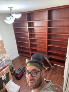 Service: Full-service custom design, in-house fabrication, and professional installation of a traditional, library-style built-in bookshelf.